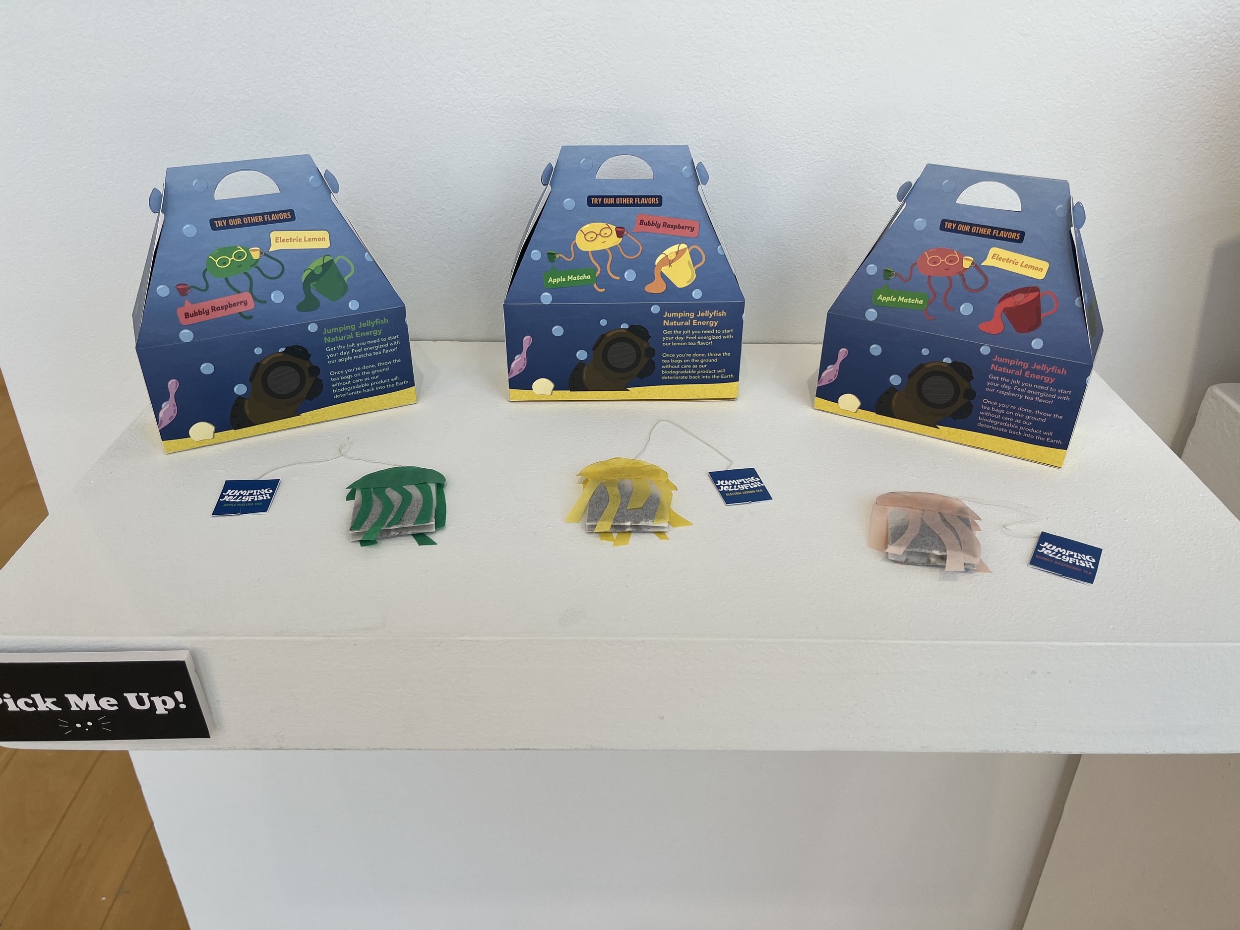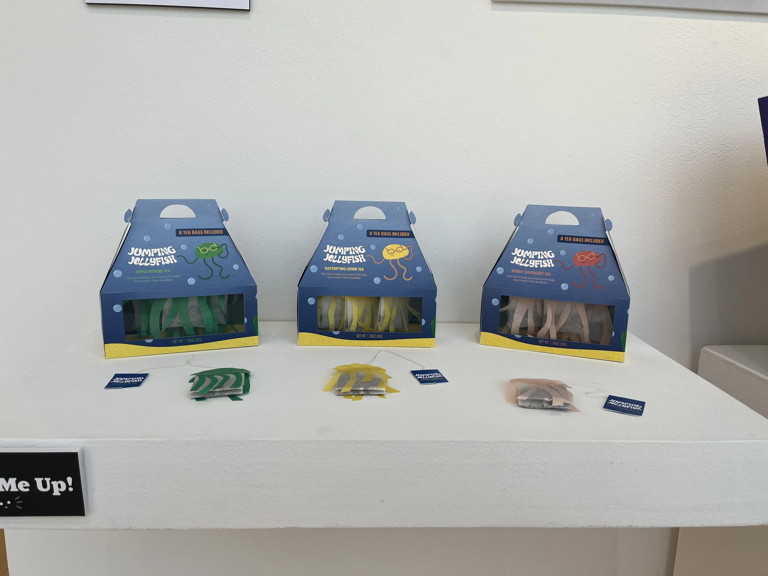 I created a new brand (Jumping Jellyfish) and designed illustrations, logo, color palette, and even cut out tissue paper to make the tea bags look like jellyfish! When you lift up the packaging, the tea bag jellyfish wiggle around like they’re swimming.